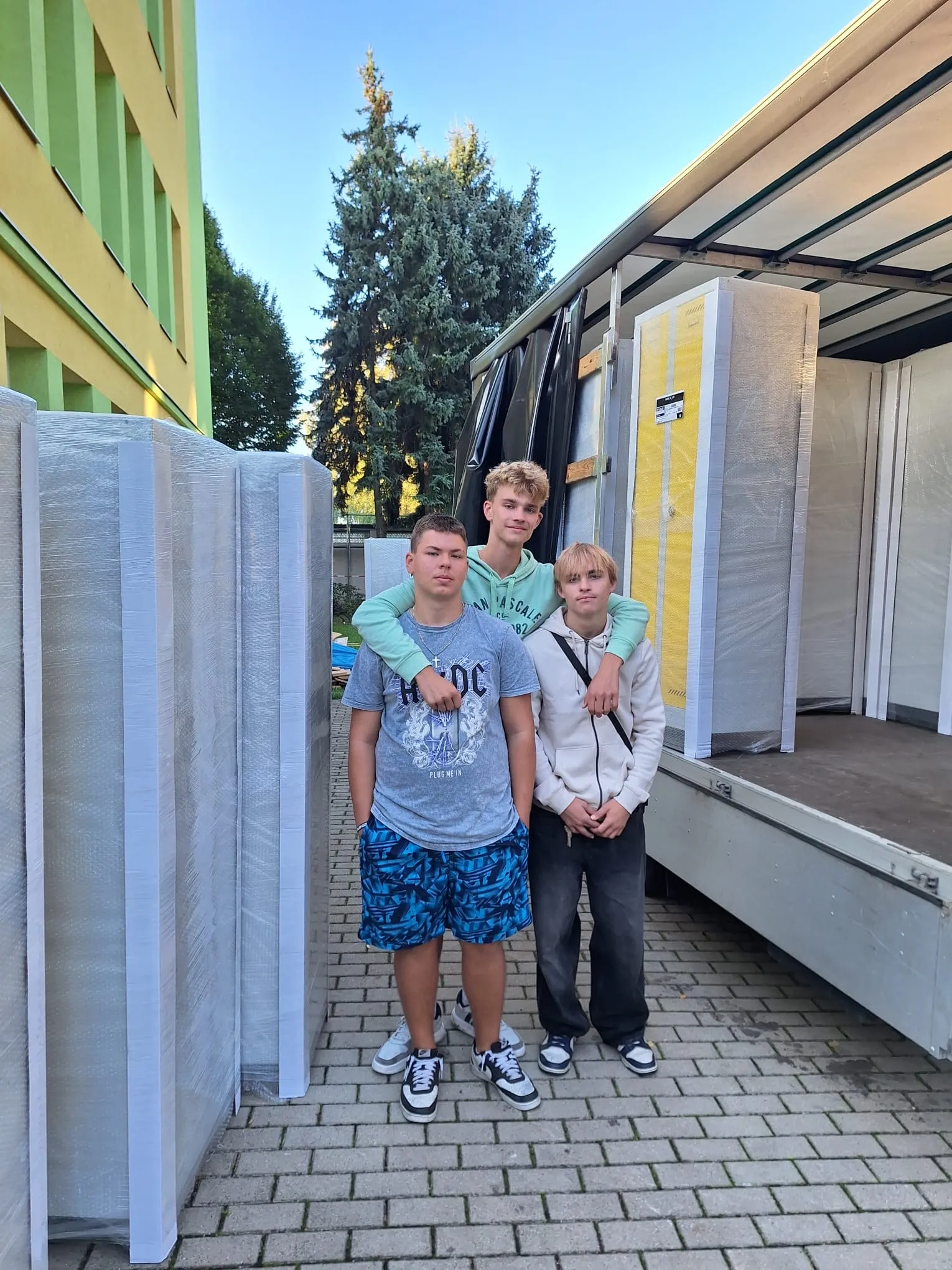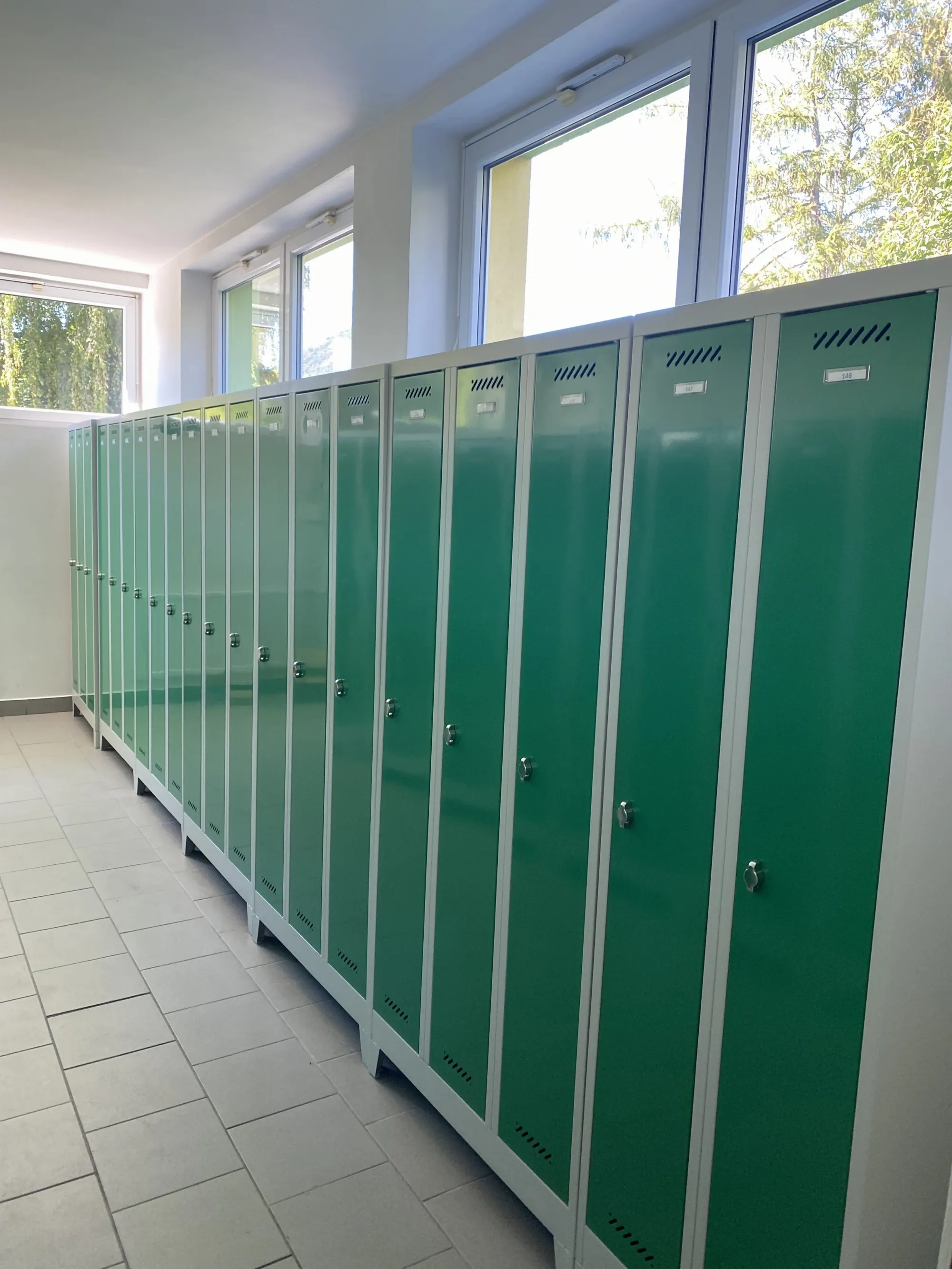 I přestože bylo ředitelské volno, tak tři kluci z devítky přišli pomoct panu školníkovi s novými šatními skříňkami. Moc jim děkujeme a chválíme je!A podívejte se, jak to dnes v šatnách prokouklo!