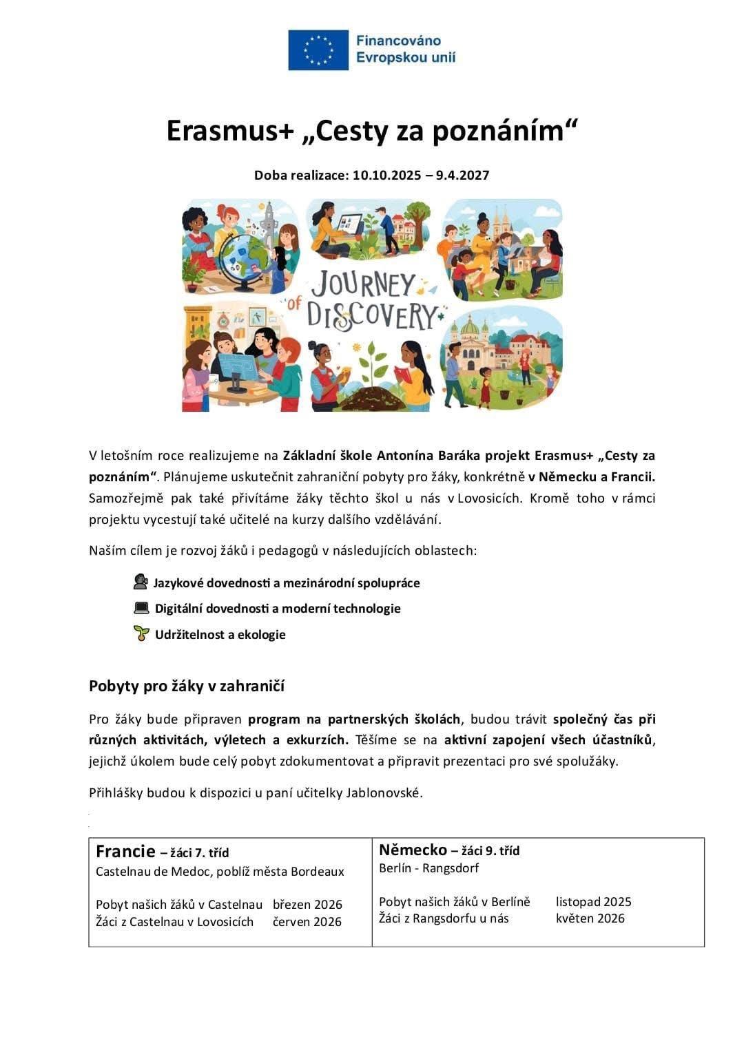 Naše škola získala podporu Erasmus+ na projekt "Cesty za poznáním".