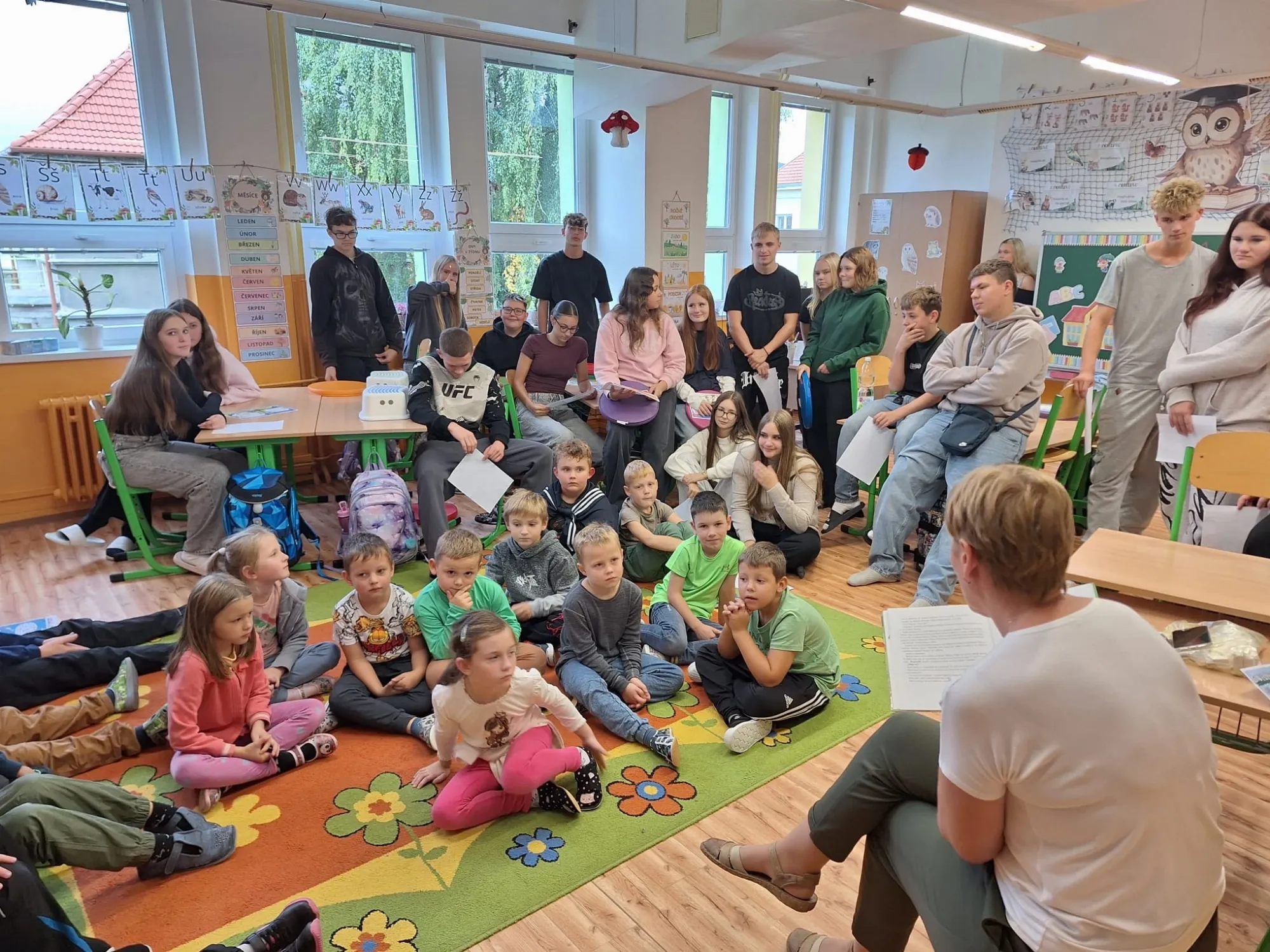 Žáci z 9.B přišli číst pohádky dětem z 1.C.