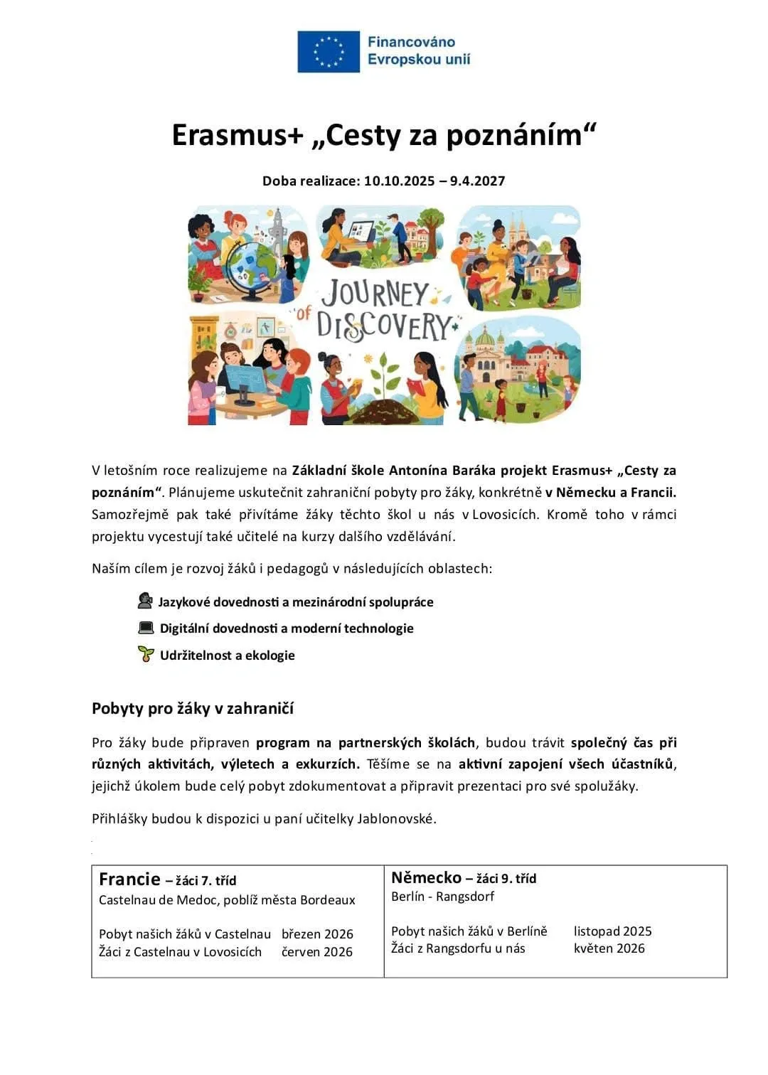 Naše škola získala podporu Erasmus+ na projekt "Cesty za poznáním"
