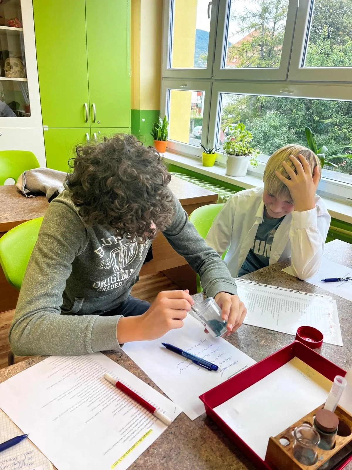 Osmáci mají za sebou první hodiny chemie.