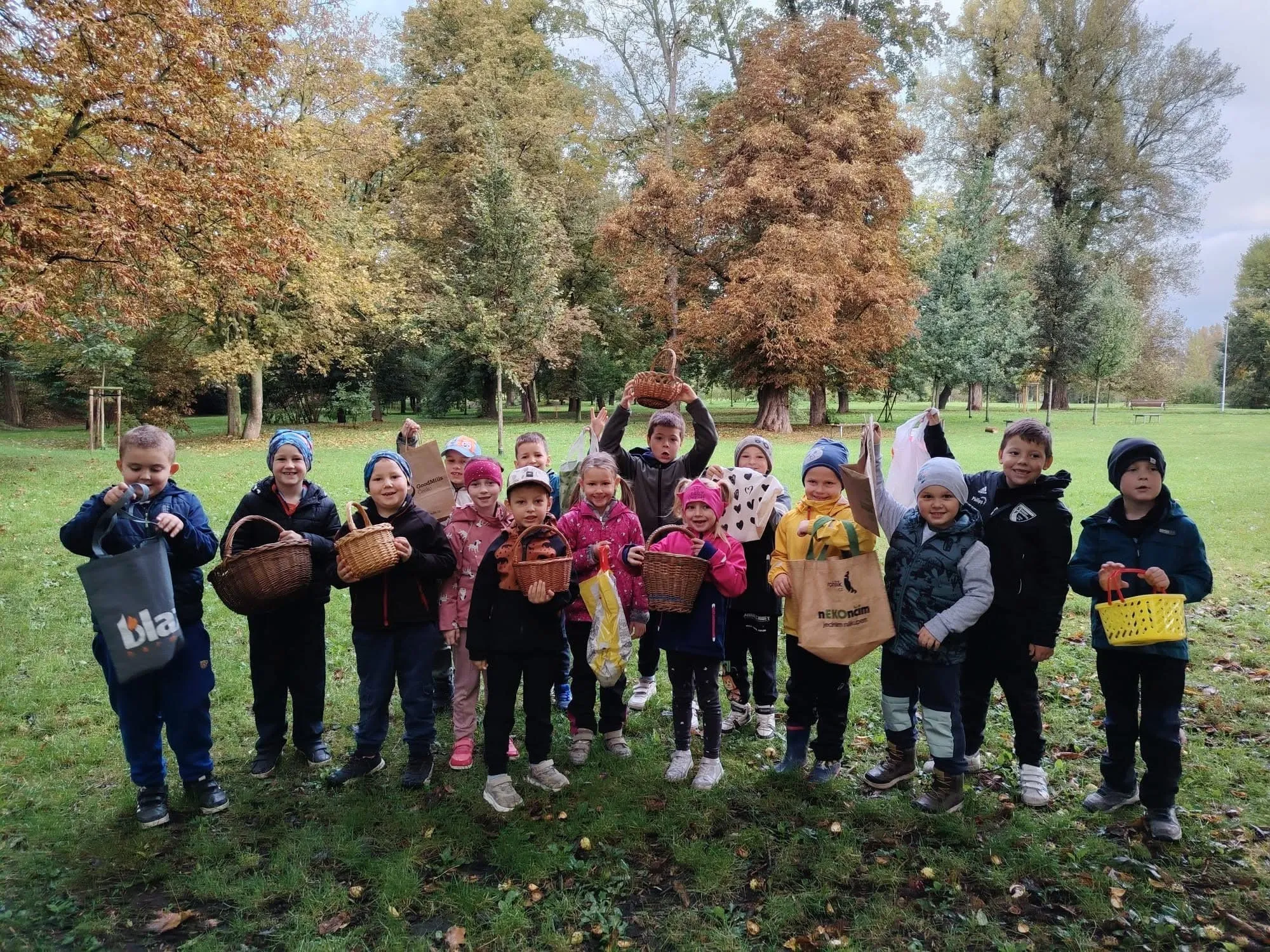 Žáci z 1.C, 3.A a 5.C se s nadšením pustili do sběru kaštanů pro lesní zvěř, která je v zimě jistě ocení.
