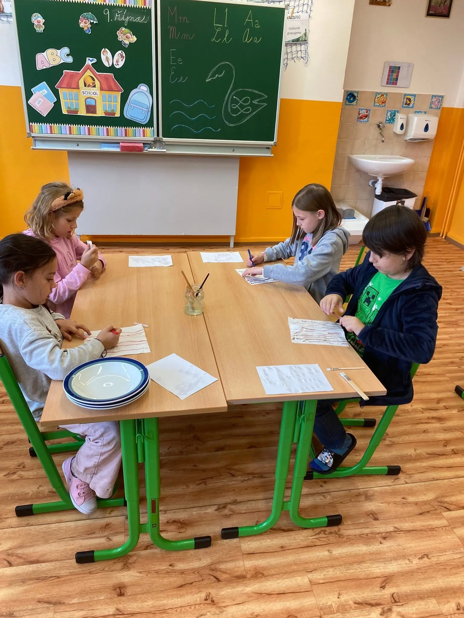 S menšími žáky jsme tvořili kouzelné obrázky s vitamínem C a hýbající se housenky.
