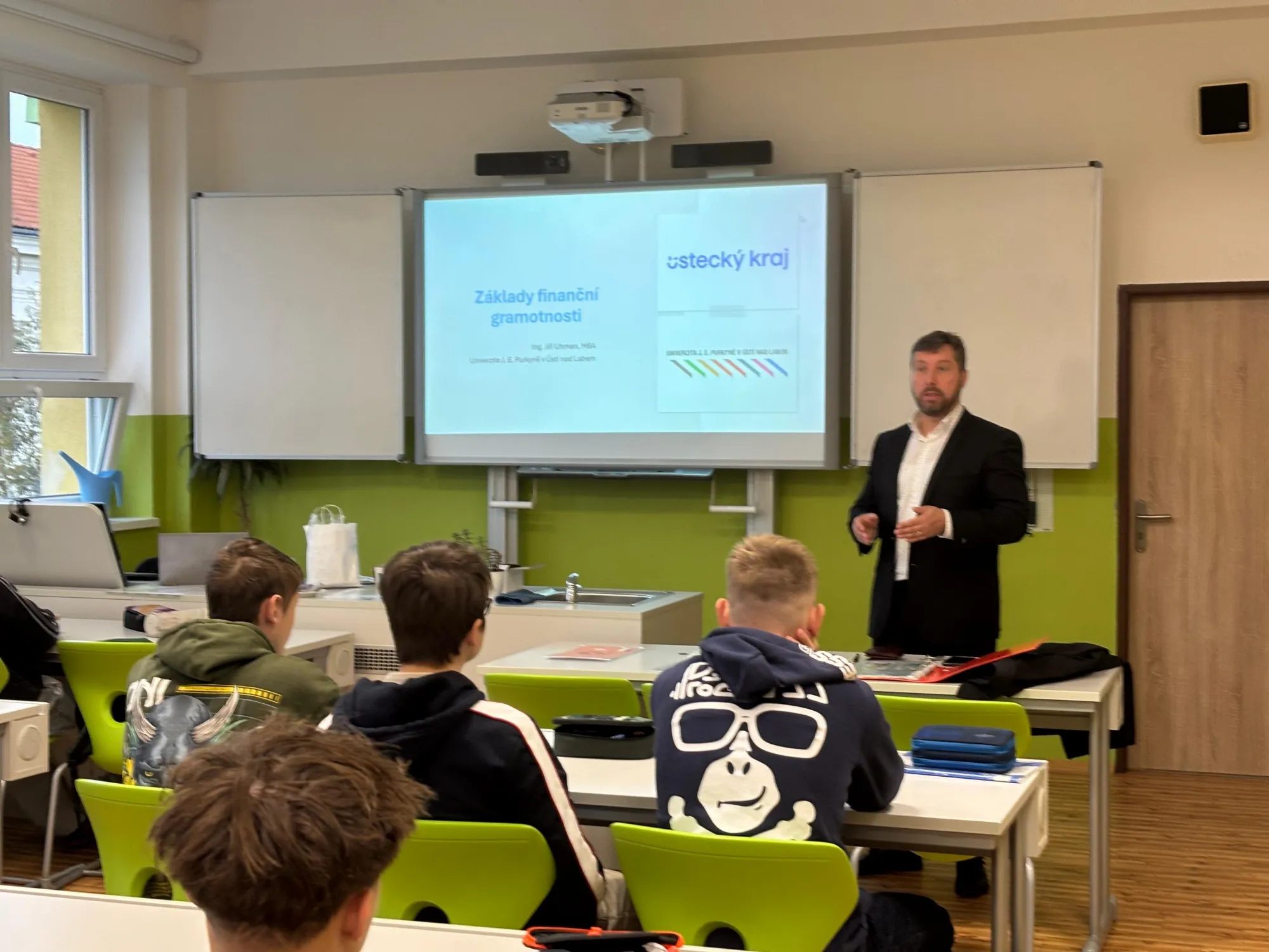V 9. třídě proběhla přednáška zástupců UJEP zaměřená na finanční gramotnost.