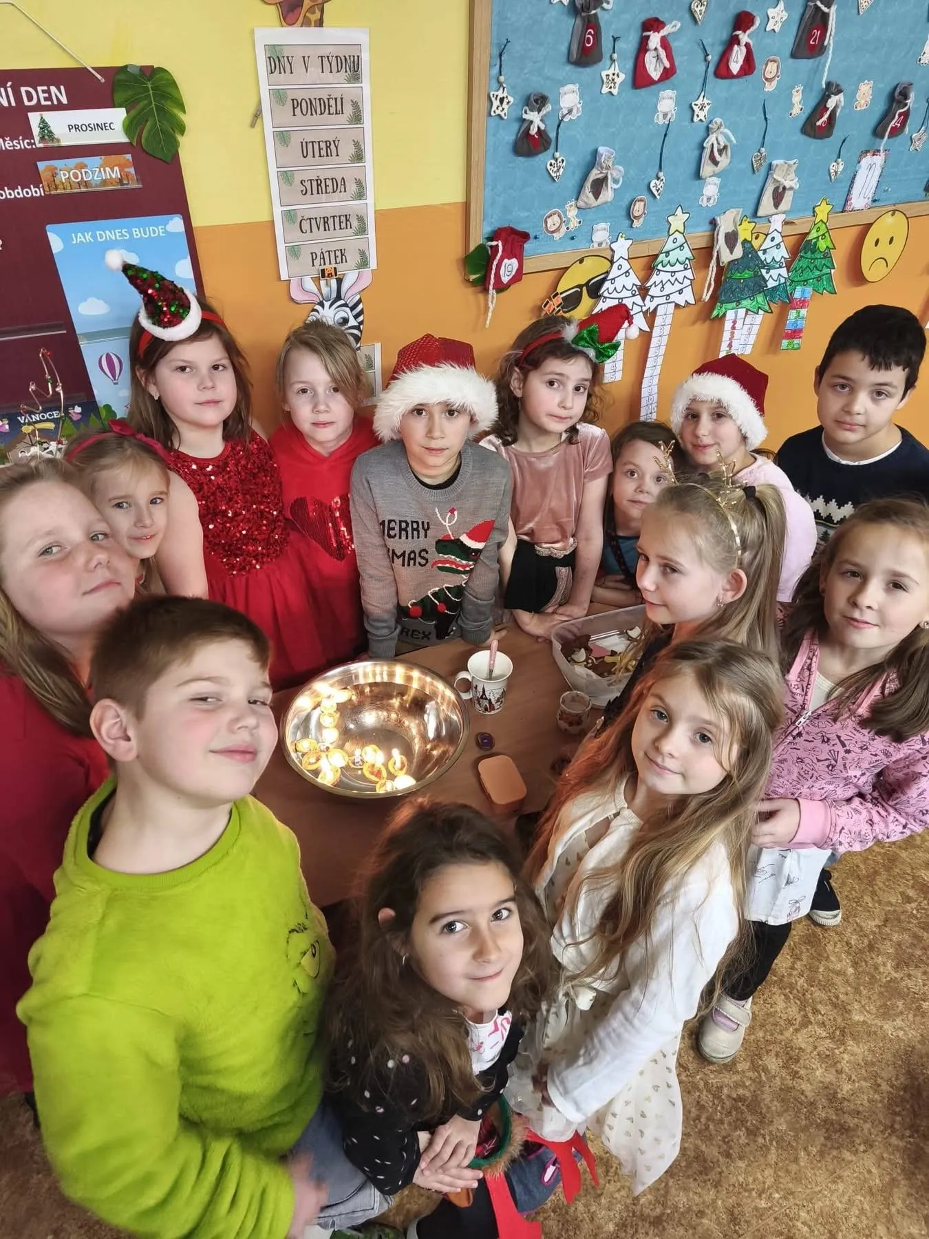 Poslední školní den roku 2025 se nesl ve znamení pohody a vánočního naladění. Celou školou zněly koledy, nechyběly tradiční vánoční zvyky, rozdávání dárků , ochutnávka cukroví ani sledování pohádek.