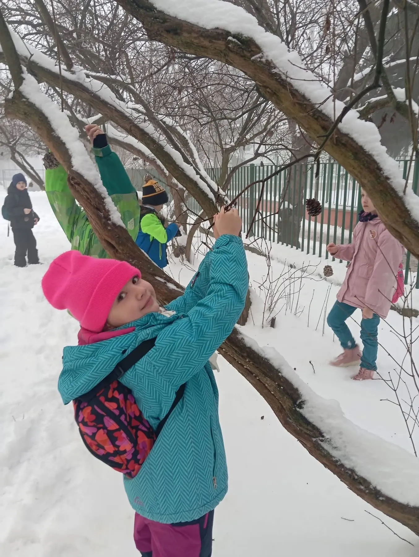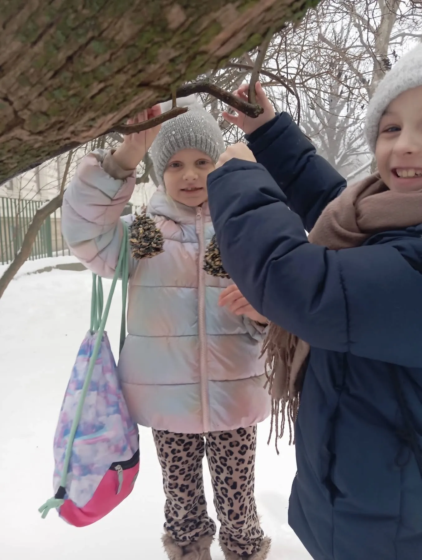 V zasněžené krajině se žáci 2.B proměnili v malé ochránce přírody. S nadšením vyráběli přírodní krmítka ze šišek obalených semínky – voňavou pochoutku pro ptáčky, která jim pomůže přečkat chladné období.