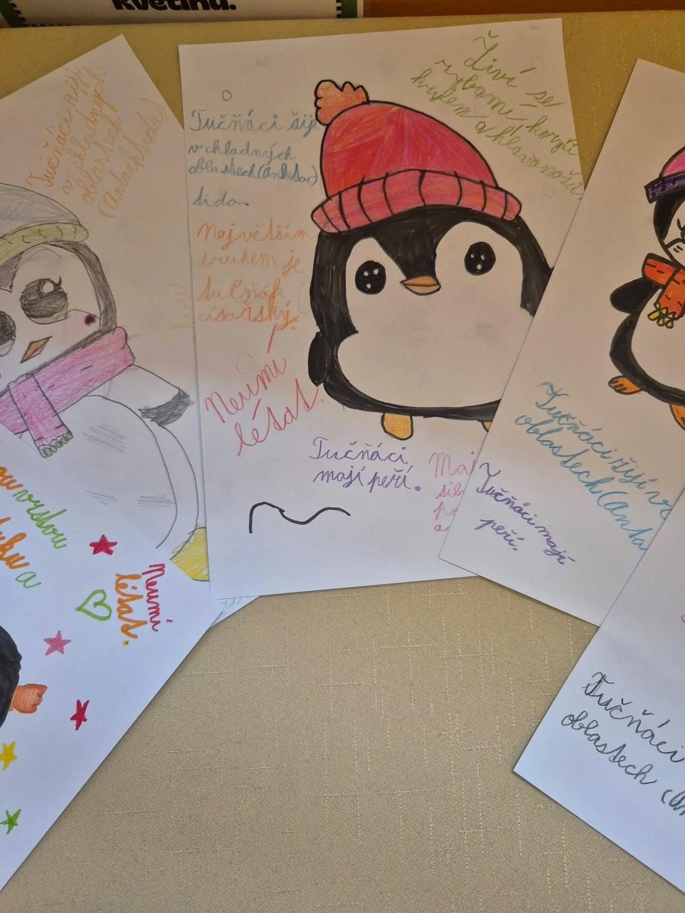 Dne 20. ledna si žáci 3.B připomněli Den povědomí o tučňácích. Během dne: